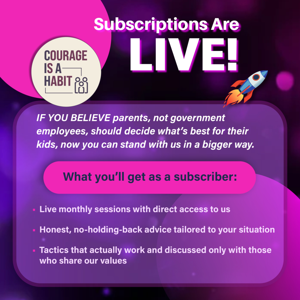 Courage Is A Habit is dedicated to exposing the many layers of indoctrination in K-12 and give you the tools to fight them, but your role as parents is far more critical! Your child doesn’t need another “teacher” dictating what to believe. They need you; engaged, active, and leading by example.