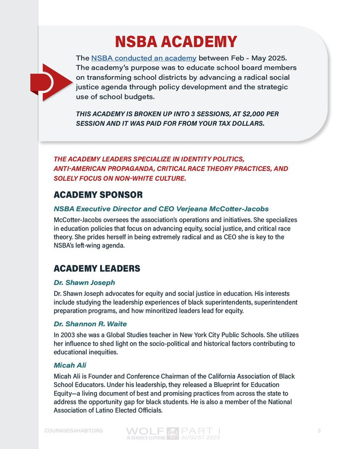 They created an entire academy to train school board members to push DEI…6 sessions at $2k per session per member.